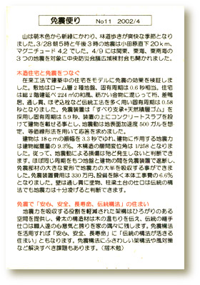 所長摺木が、2000年から定期的に発行している「免震便り」のバックナンバー。